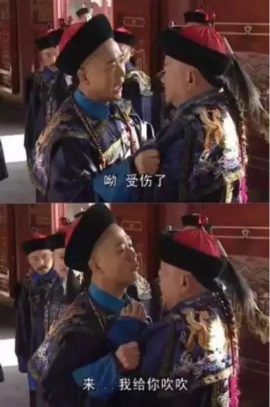 不过,为了不让角色显得太高高在上、比较欠打,王刚用皱眉嘟嘴的卖萌微表情柔化了台词,让和珅更像是在假装正经。