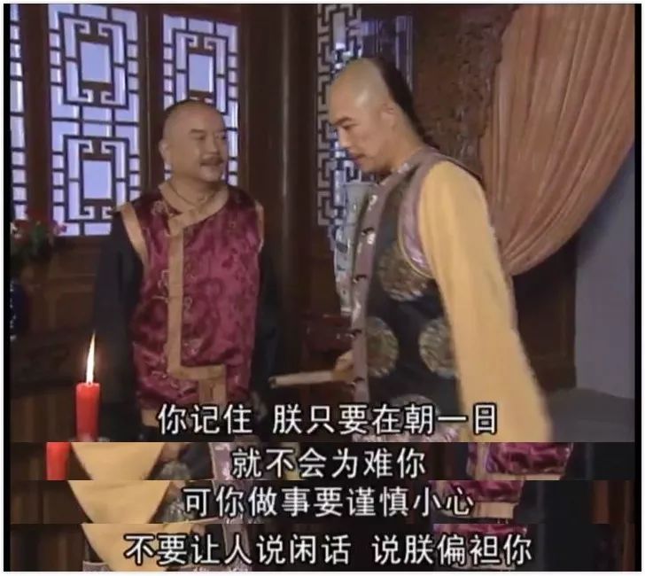 日常里就打打圆场,看纪和二人互相制衡,一边帮着纪晓岚敲打和珅,一边夸着和珅“好用”。