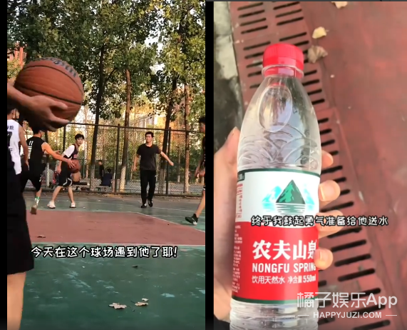 篮球场边,你看上了那个打篮球的男孩,想给他送水:
