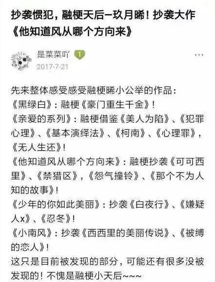 《少年的你》原著出于“融梗天后”?