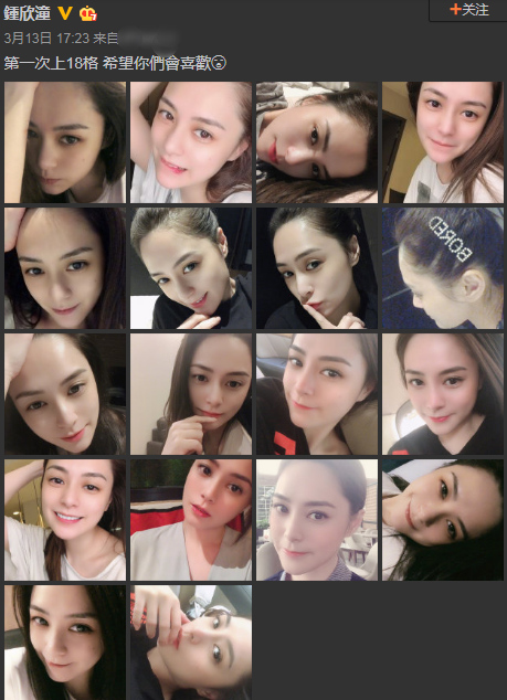 近日,钟欣潼在个人社交网站上一连发布了18张自拍,大秀超高颜值,优越的锁骨十分瞩