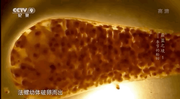 往小了看,中国南海,有正在破卵而出的法螺幼体。