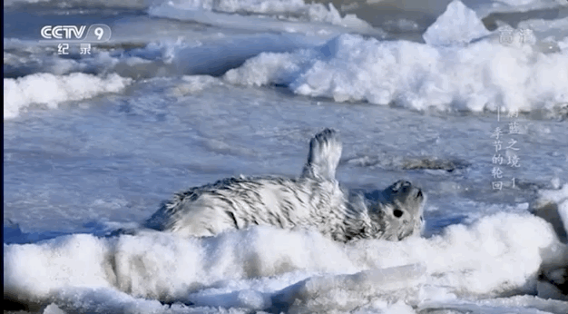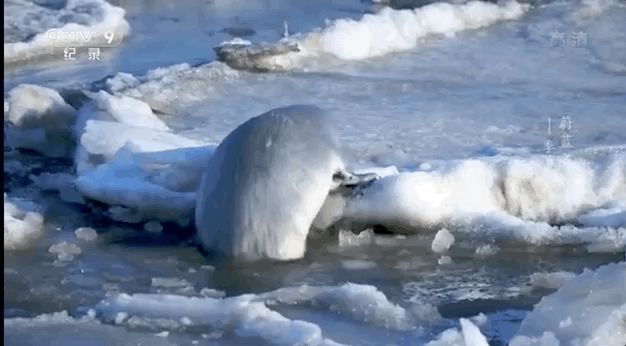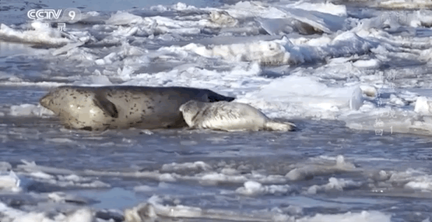 就是冰面比较脆弱,圆滚滚的斑海豹妈妈一不留神,就能在宝宝面前表演“消失”。