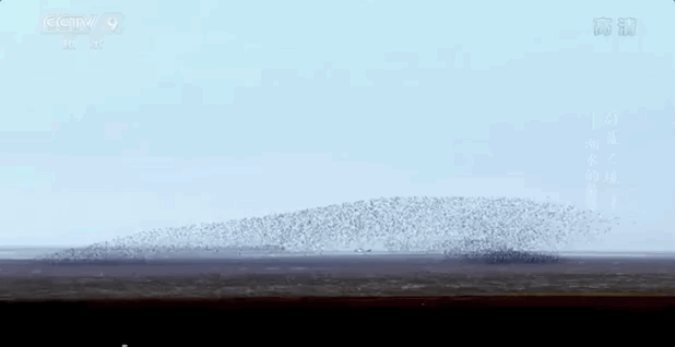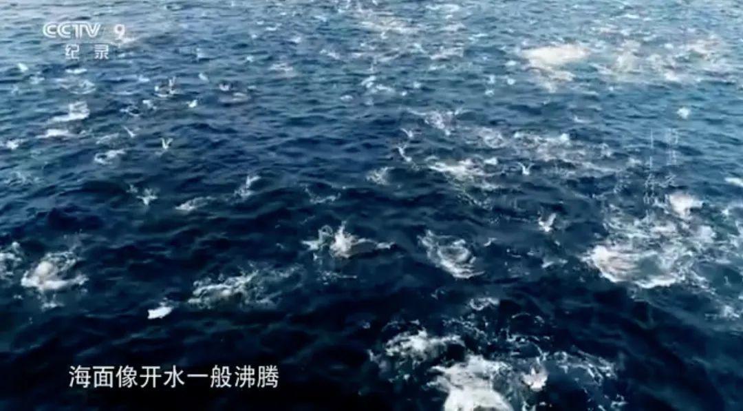 黄海北部,当天上的黑尾鸥和水里的黄条鰤一起围攻小鱼时, 配音说的是,海面闹腾得像开水一样。