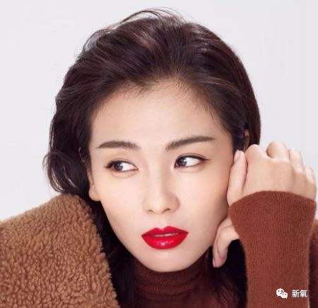 周迅的下巴尖,唇角尖,眼角也尖,眉毛弯弯,唇线明显。