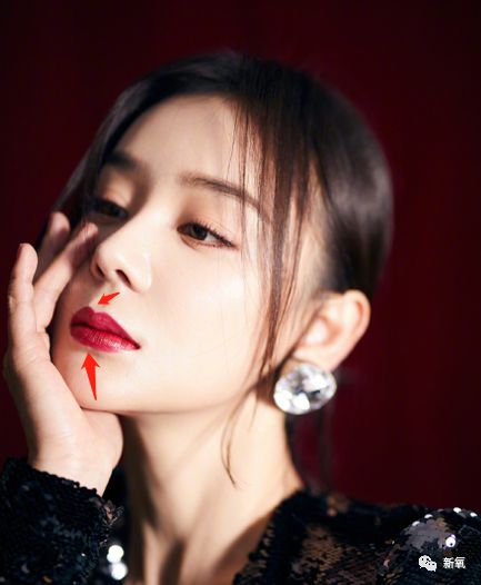 只是把原图的裸色换成红色,周韵的面部五官就大幅度的亮了起来。