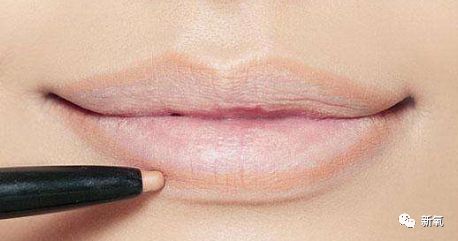 第二步,不把下唇涂满,把上唇勾出了弧度明显的唇线,然后把唇角部位往尖出画。