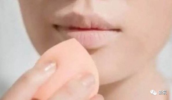 第一步,用粉底液打底,遮盖原有的嘴唇厚度。