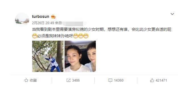为此,孙俪还特意晒出和妹妹的合影,解释妹妹孙艳参演《安家》的原因“当我看到剧本里需要演房似锦的少女时期,想想还有谁,会比此少女更合适的呢?必须是我妹妹孙艳呀。”