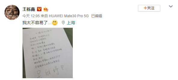 3月15日,王栎鑫晒出手写歌词调侃妻子吴雅婷追星,他在纸上写出了《墙头之歌》的歌词,“在哪里,在哪里见过你,你的名字这样熟悉,在别人的微博里。”“是你是你,睡在我旁边想着别人就是你,宇宙超级无敌美少女就是你,吴雅婷。”