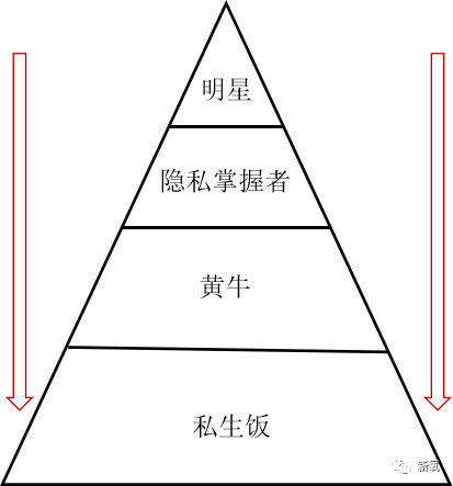 明星隐私的流出是分层级的,从下面这个信息金字塔中我们可以看到隐私最先流向的是“隐私掌握者”,那他们是谁?
