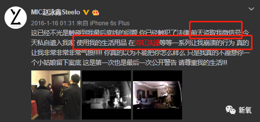 MIC男团成员赵泳鑫的私生饭曾私自潜入他家,不仅使用他的私人物品,还在他家泡澡。试想一下,有天下班回家,打开卫生间发现一个陌生人赤身裸体的躺在你家浴缸,是不是恐怖又变态 。