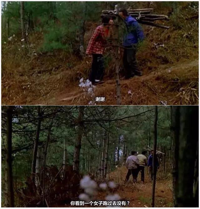 逃跑的女人遇到一位扛柴火的老农,老农头也不回地指路。