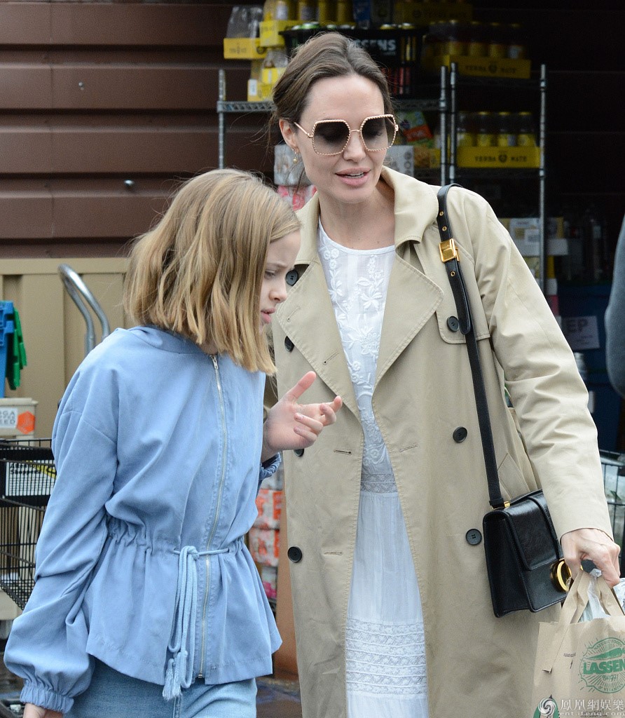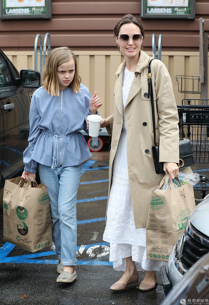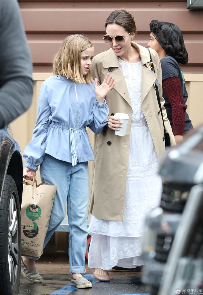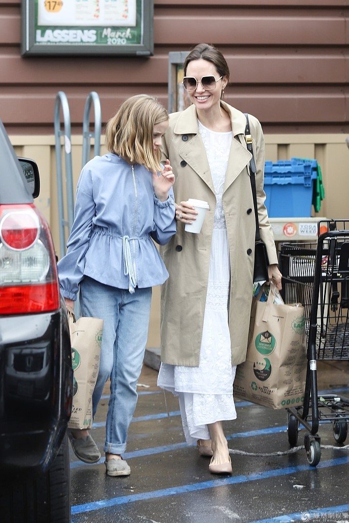 当地时间3月14日,安吉丽娜·朱莉与女儿维维安·玛琪琳·朱莉-皮特外出购物。朱莉身穿米色风衣和白色长裙高贵优雅,女儿穿着蓝色衣裤十分清纯,母女俩边走边聊十分开
