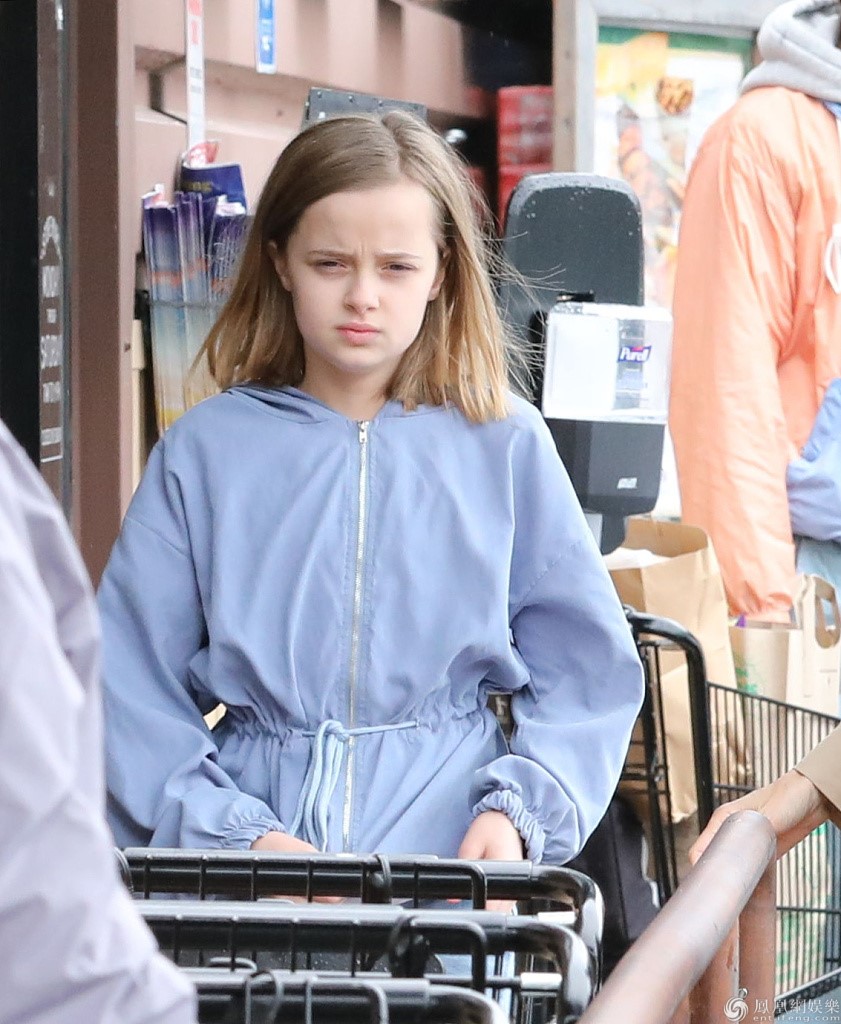 朱莉女儿穿着蓝色衣裤十分清纯。