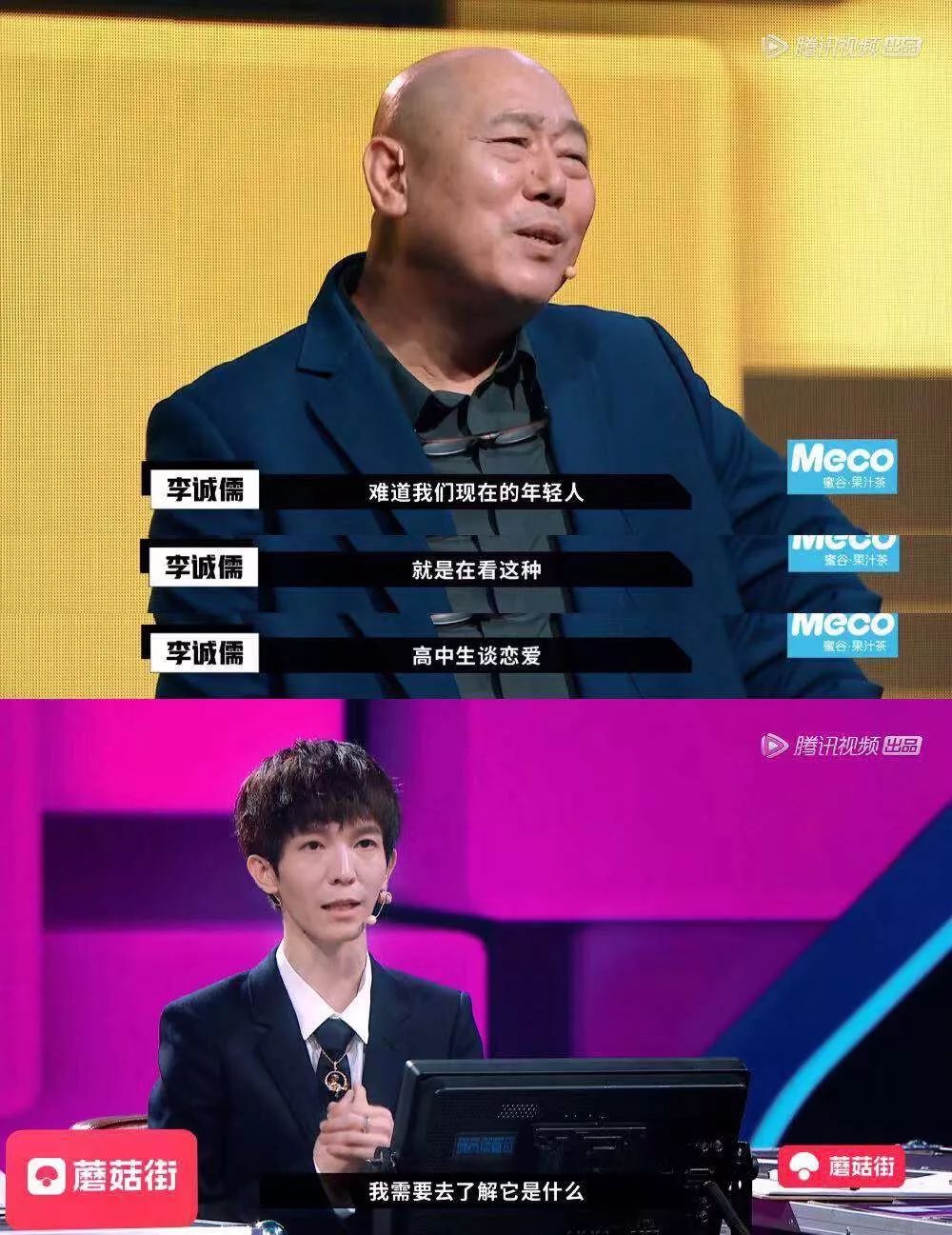 而郭敬明组“董力和郭俊辰”对战的《悲伤逆流成河》,直接被李诚儒“炮轰”: 这是畅销书改编的吧? 这样演下去,他们年轻一辈受到什么教育了? 郭敬明也赶紧“护崽”保护前方演员,说这场戏不够好80%的原因在自己这边。 然后调转枪口: 《悲伤》不是情情爱爱而是国内第一部讨论校园霸凌的小说,是不是可以允许喜欢不同的电影类型?