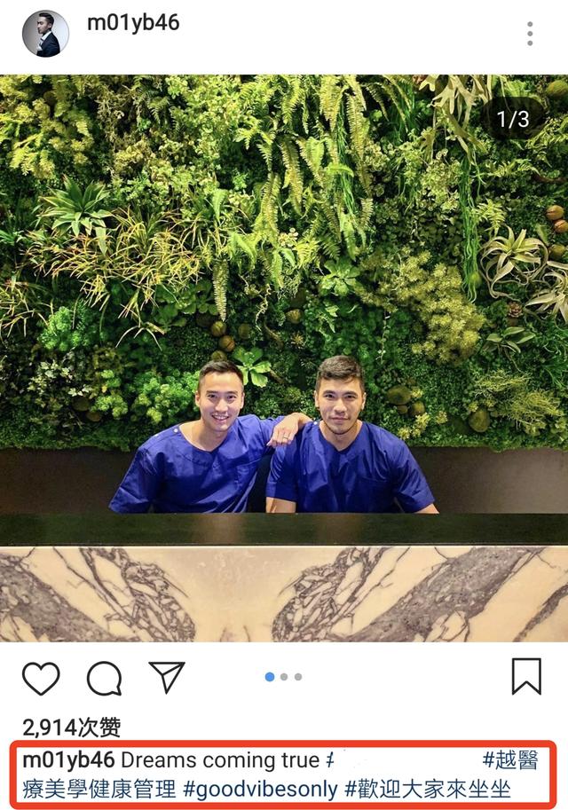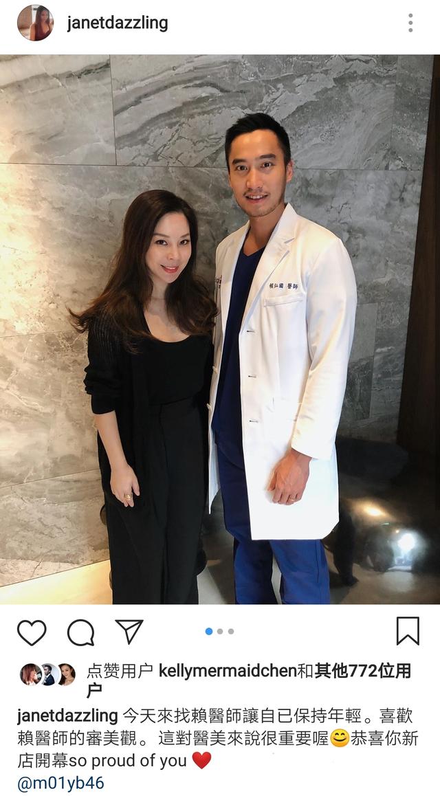 杨秀蓉发文说道:今天来找赖医师让自己保持年轻,喜欢赖医师的审美观,这对医美来说很重要喔,恭喜你新店开幕,so proud of you!并且最后还艾特了赖弘国。