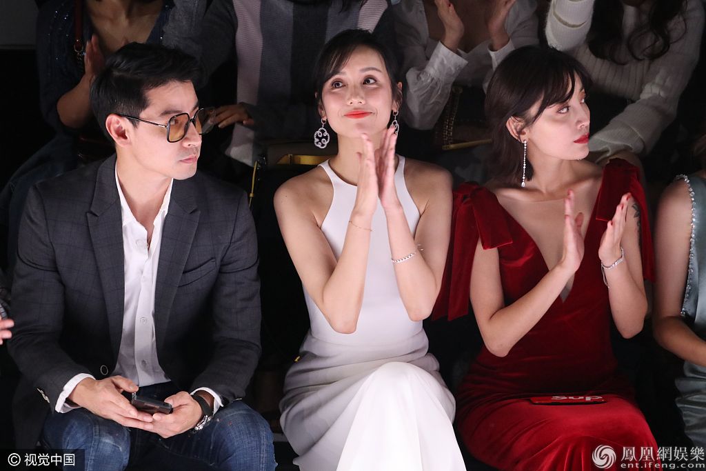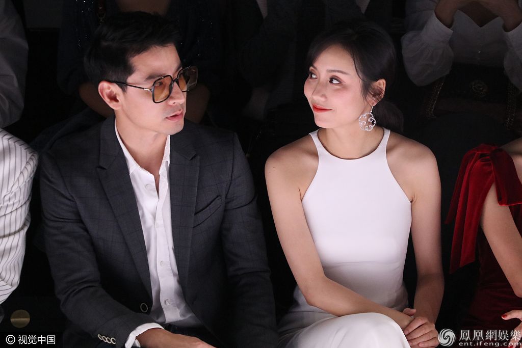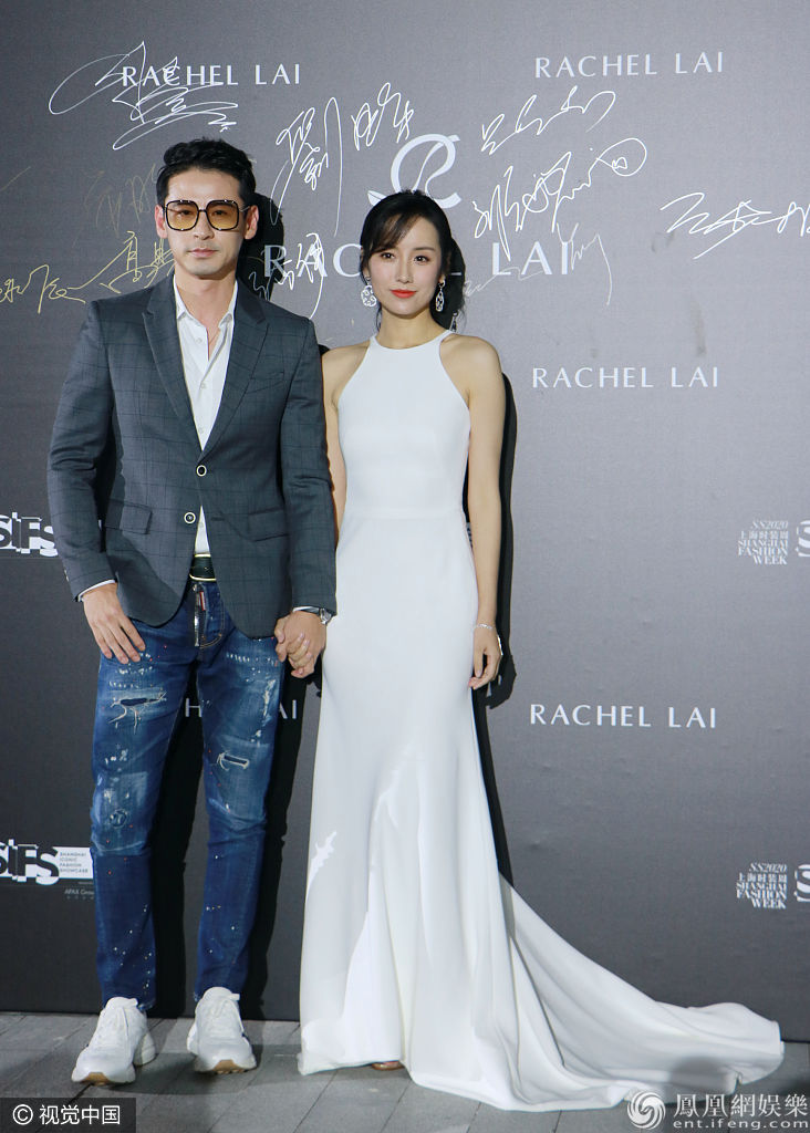 2019年10月14日,上海,2020春夏上海时装周,RACHEL LAI秀,吕一一袭白裙亮相优雅大方,与老公钱泳辰合体秀恩爱,甜蜜对视羡煞旁人。 图片来源:签约供稿人/视觉