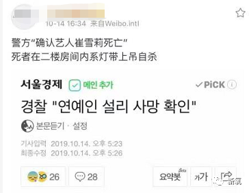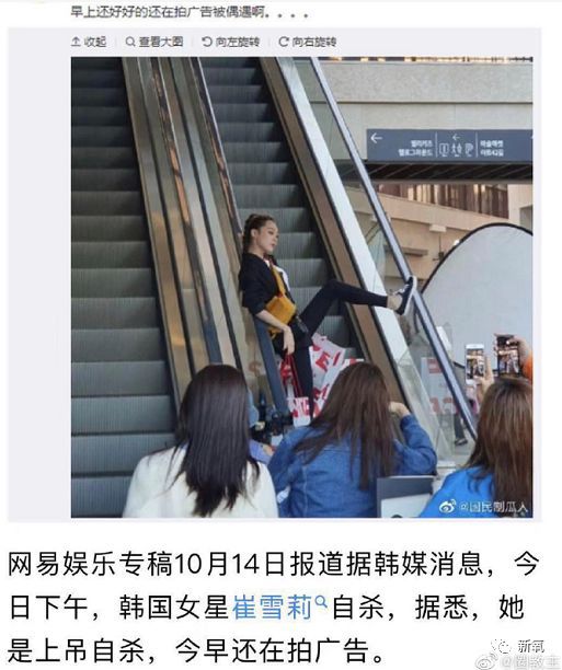 就在文章马上结束的时候,SM娱乐方就雪莉死亡消息发表官方立场,声明表示“雪莉已经离开了我们,无法相信现在的情况,感到非常悲痛”···