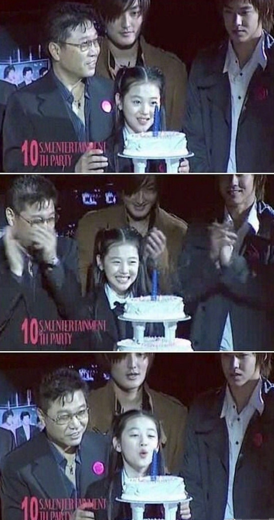 SM十周年时,雪莉作为代表上台吹蜡烛。