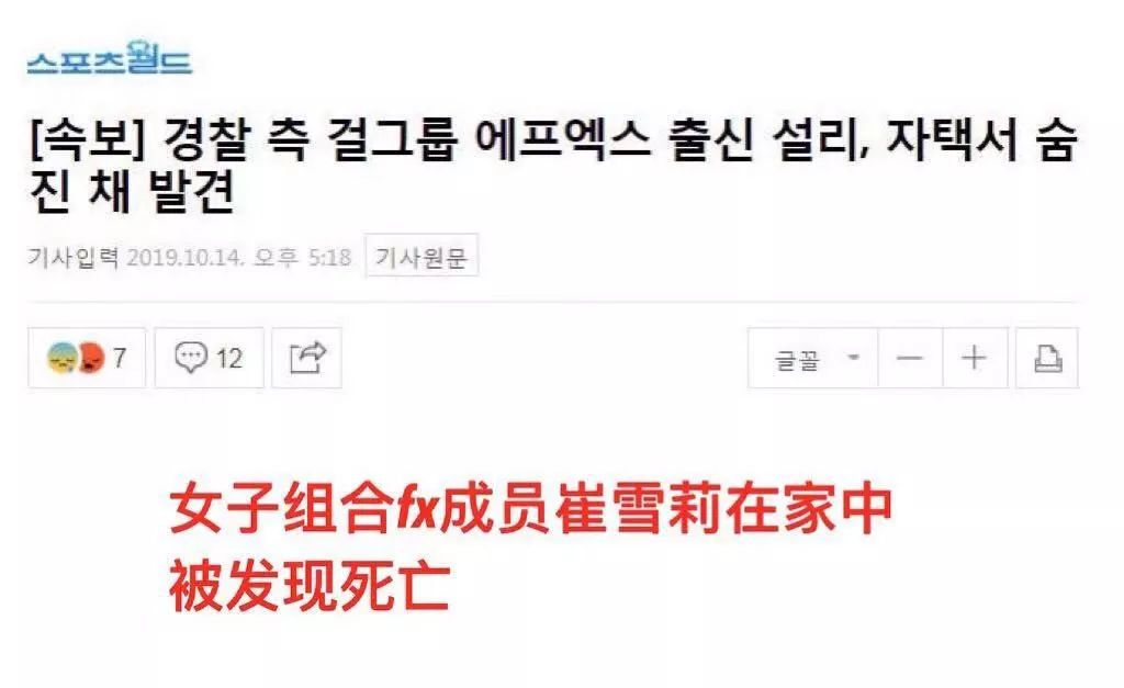 今天最让人震惊的突发新闻,莫过于韩国女星崔雪莉在家中身