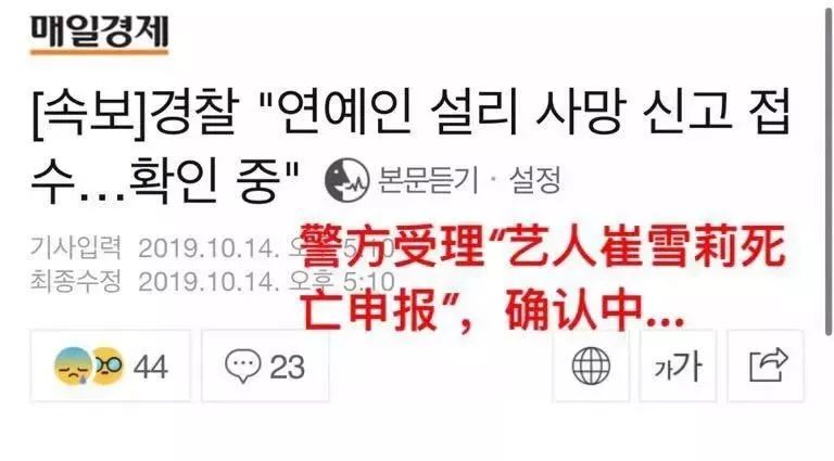 最开始韩网的标题措辞是“接到死讯,但仍在确认”。