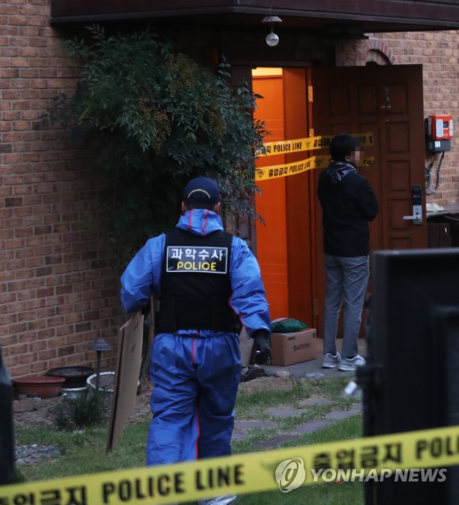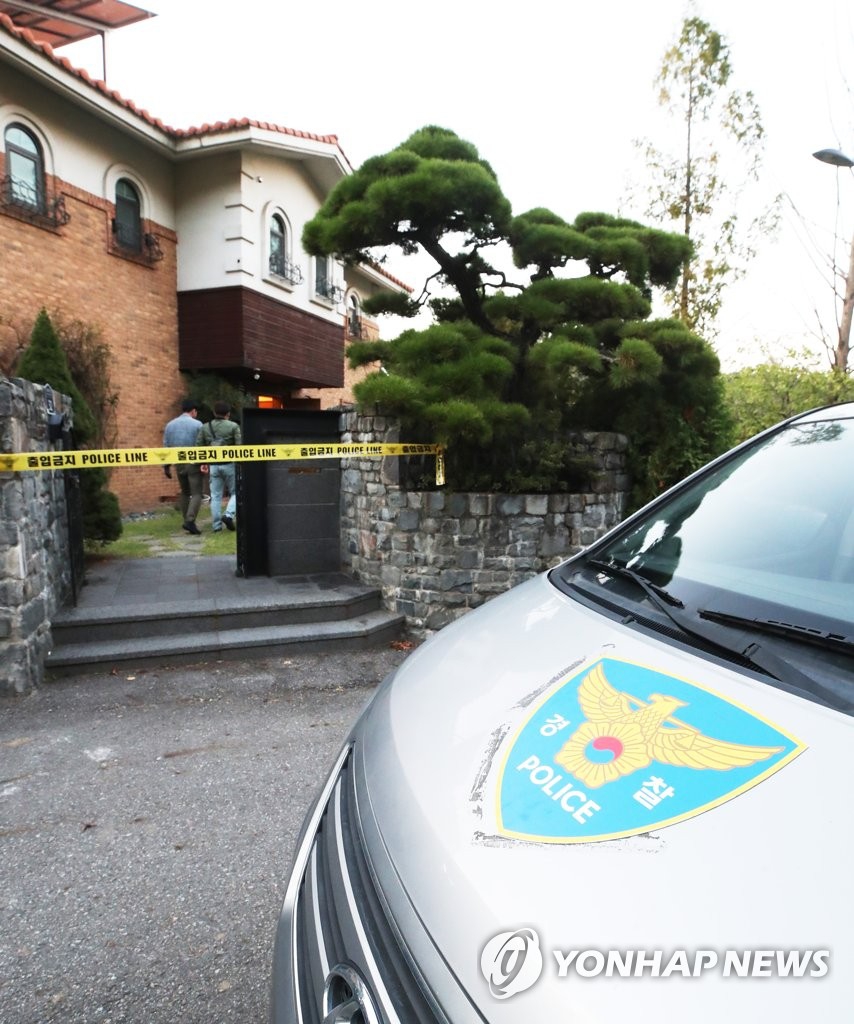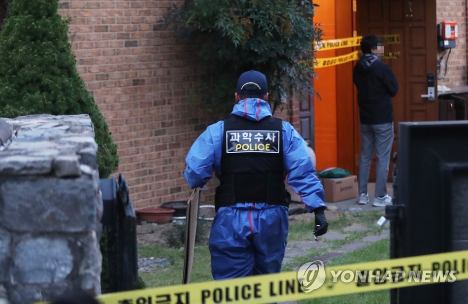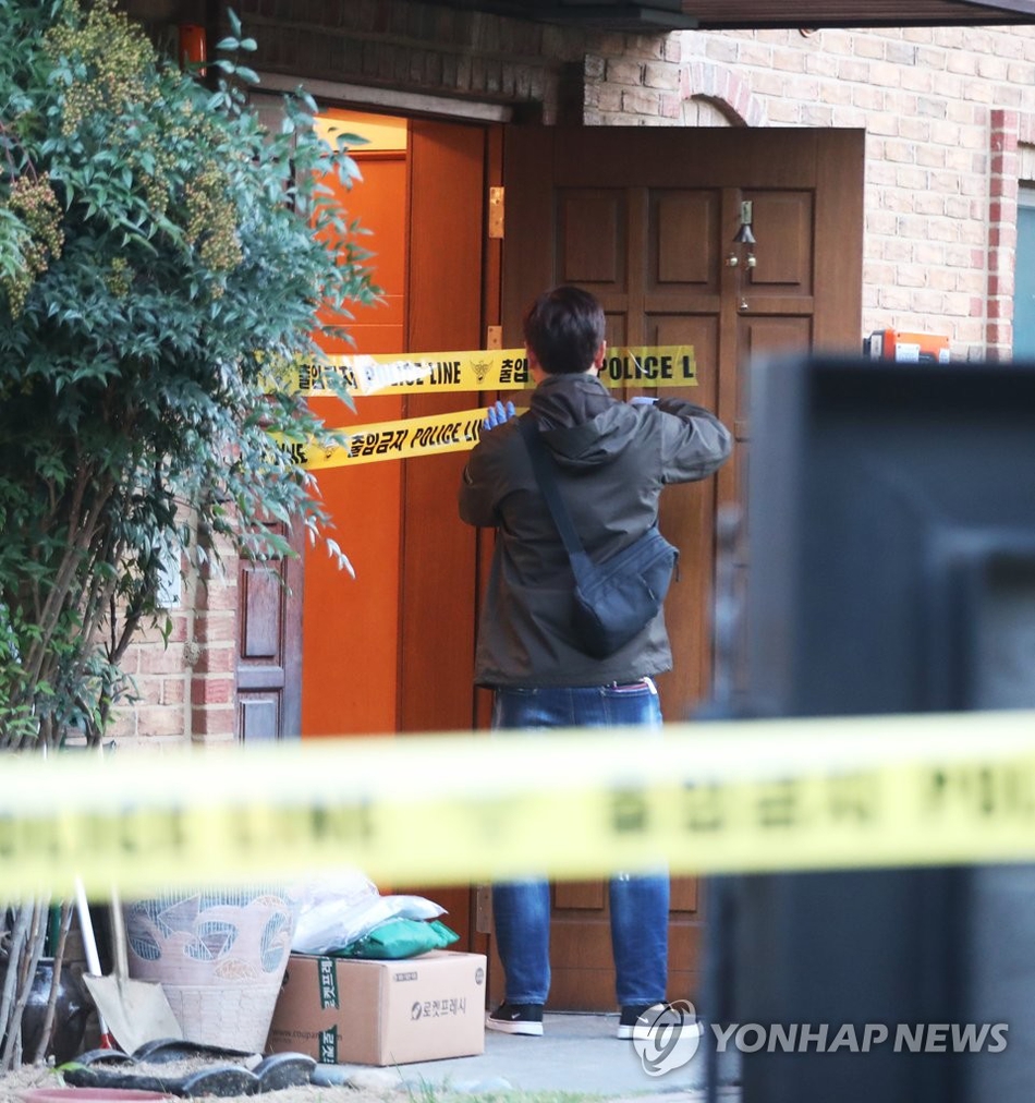 雪莉京畿道城南市住宅外部,警车停在门口。
