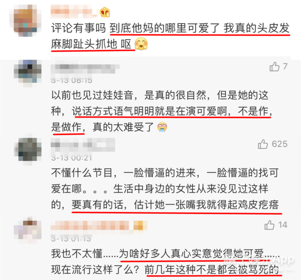 “嗲声嗲气、矫揉造作,让人窒息。”