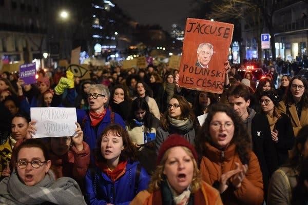 在凯撒奖会场外抵制波兰斯基的游行