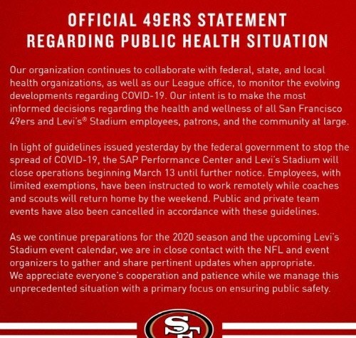 对此,体育场方面发布声明表示,将按照联邦政府为阻止新型肺炎扩散发表的方针,体育场将于3月13日开始中断运营,直到有新公告为止。