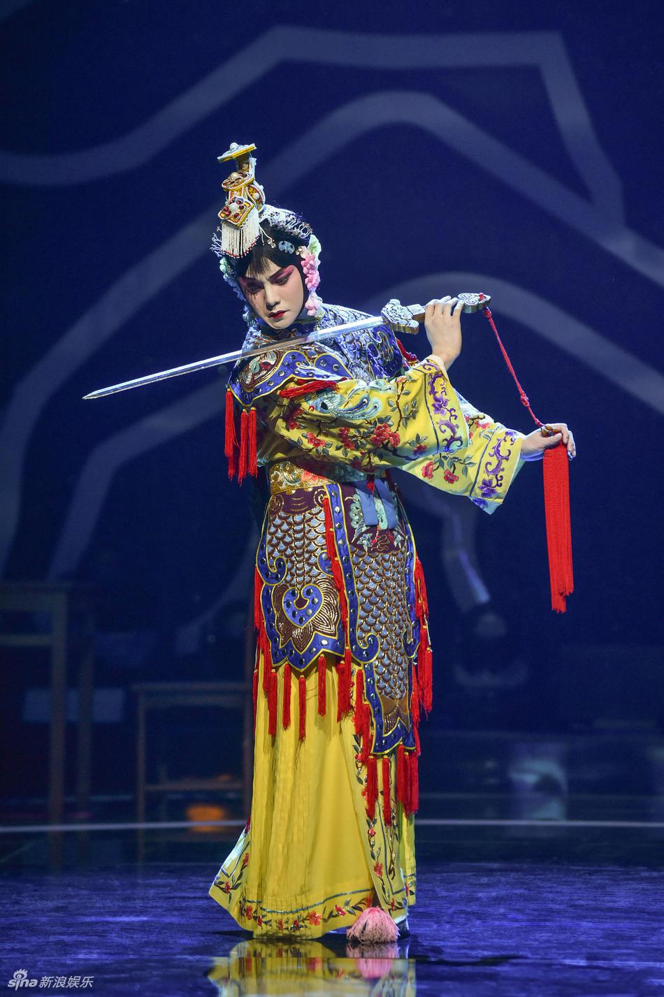 他也在综艺上扮过虞姬。有一期《王牌对王牌》,节目组为了致敬张国荣,请了尹正来扮演程蝶衣,还特意邀请了宋小川老师来为尹正上戏装。