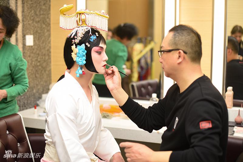 “我离‘他’那么近,宋老师一边画一边给我讲张先生的故事,回忆当年他给张先生化妆的种种。眼神很温柔。想想25年前就是这双手一下一下地把张先生抹成了虞姬的样子,心里感概万千,嘴里也说不出什么话了,我最爱的演员,他那么爱的角色。说来也好笑,画到一半,摄影师说你对着镜子描描嘴,可是嘴和手都在发抖,好紧张。”