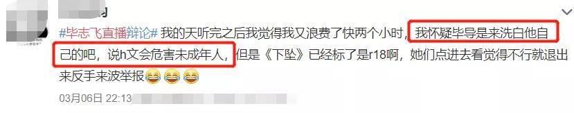 当时直播时,毕志飞也是坚定表示《下坠》这部作品的涉黄性质,还称对未成年人有危害性。站的就是肖战粉丝的举报并没有错一方。
