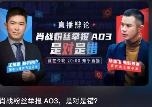 后来毕志飞还为肖战事件开启了直播辩论,辩题就是“肖战粉丝举报AO3,是对是错”。