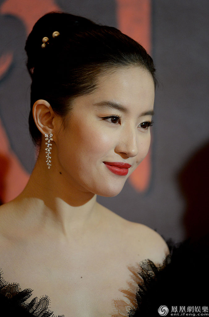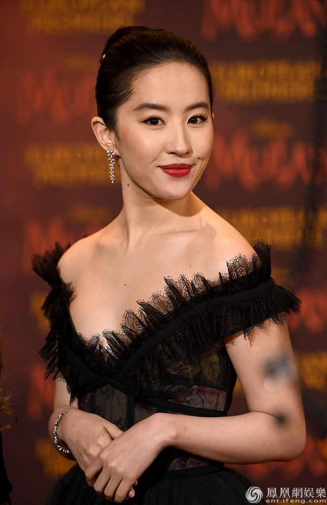刘亦菲穿露肩礼裙似优雅黑天鹅。