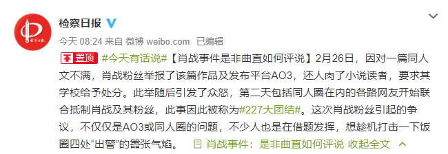 第一篇:检察日报评肖战事件:是非曲直如何评说