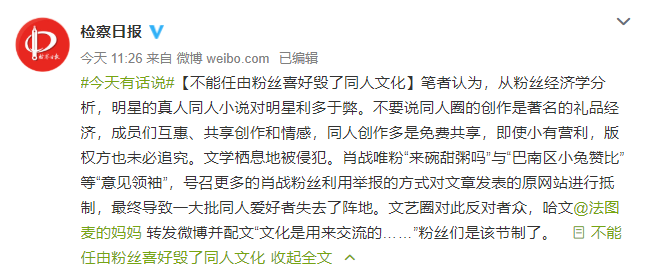 第二篇:检察日报:不能任由粉丝喜好毁了同人文化