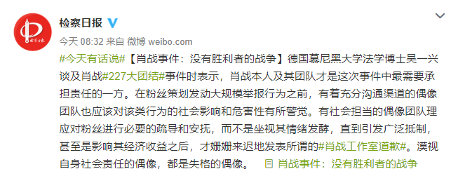 第三篇:检察日报评肖战事件:没有胜利者的战争
