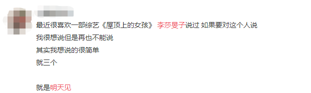 这股热度为李莎旻子最新的综艺《屋顶上的女孩》带来了关注,节目里谈及前男友时的李莎旻子深情但清醒,关于“明天见”的话题更是引发了网友的强烈共鸣。