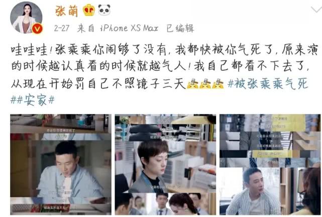 就连扮演者张萌自己也看不下去了,直接在微博上吐槽张乘乘无理取闹,还会贴心的提醒“今天没有张乘乘的戏份,大家可以安心追剧”。