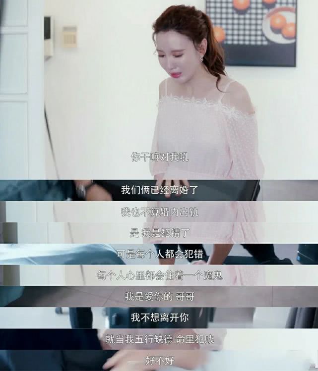 既追求婚后的激情,刺激,还不想舍去徐文昌给予的安稳;嘴里叫着徐文昌“哥哥”,还依旧贪图着其他小奶狗叫“姐姐”……典型的又当又立。