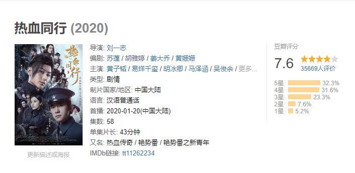《热血同行》开播后,关注度节节攀升,豆瓣评分7.6,成为同期评分最高的电视剧,没有之一。