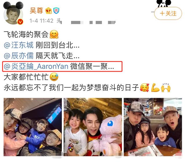据悉,吴尊退队后,曾与汪东城,辰亦儒合伙投资美发沙龙,三人虽然虽然事业发展方向不同,但感情不散。同框不易,自各自单飞后,却从不见曾经团员炎亚纶的身影。