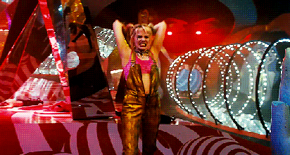 片中哈莉奎恩的服饰选择以各种抢眼的荧光色系为主,为的是体现她爱冒险的夸张个性。