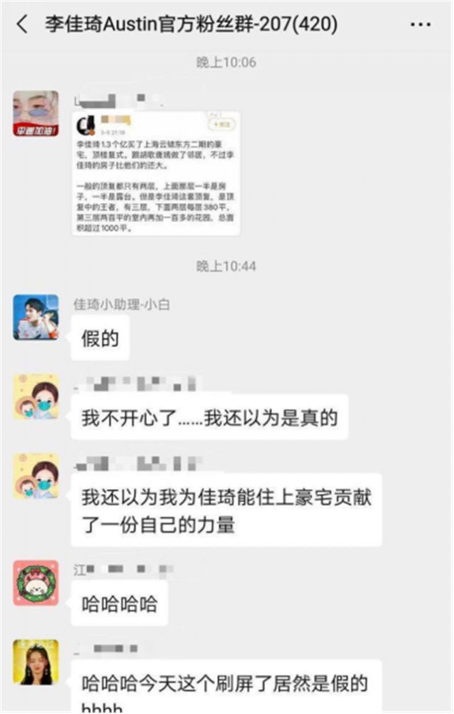 可到了3月7日晚,李佳琦助理便在粉丝群中辟谣表示,1.3亿元买房的消息是假的。
