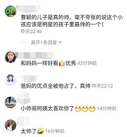 果然,网友也是拜倒在他的颜值之下,纷纷留言称:“曹颖的儿子是真的帅,毫不夸张的说,这个小孩应该是明星的孩子里最帅的一个!”“五官没得挑,爸妈的优点全被他占了”。