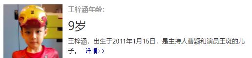 2016年,曹颖与王斑携儿子上了一档二胎综艺节目,当时才5岁的王梓涵,与突如其来的“妹妹”相处的十分友好。维护妹妹的好哥哥形象,再加上实打实的高颜值,王梓涵着实俘获了不少观众的心。