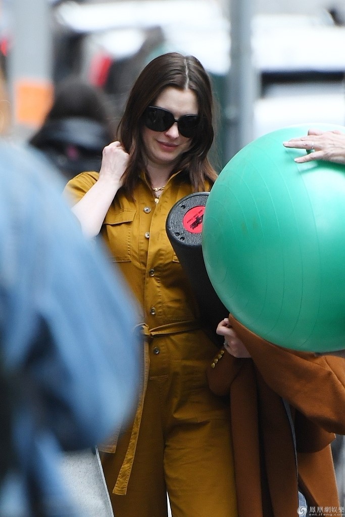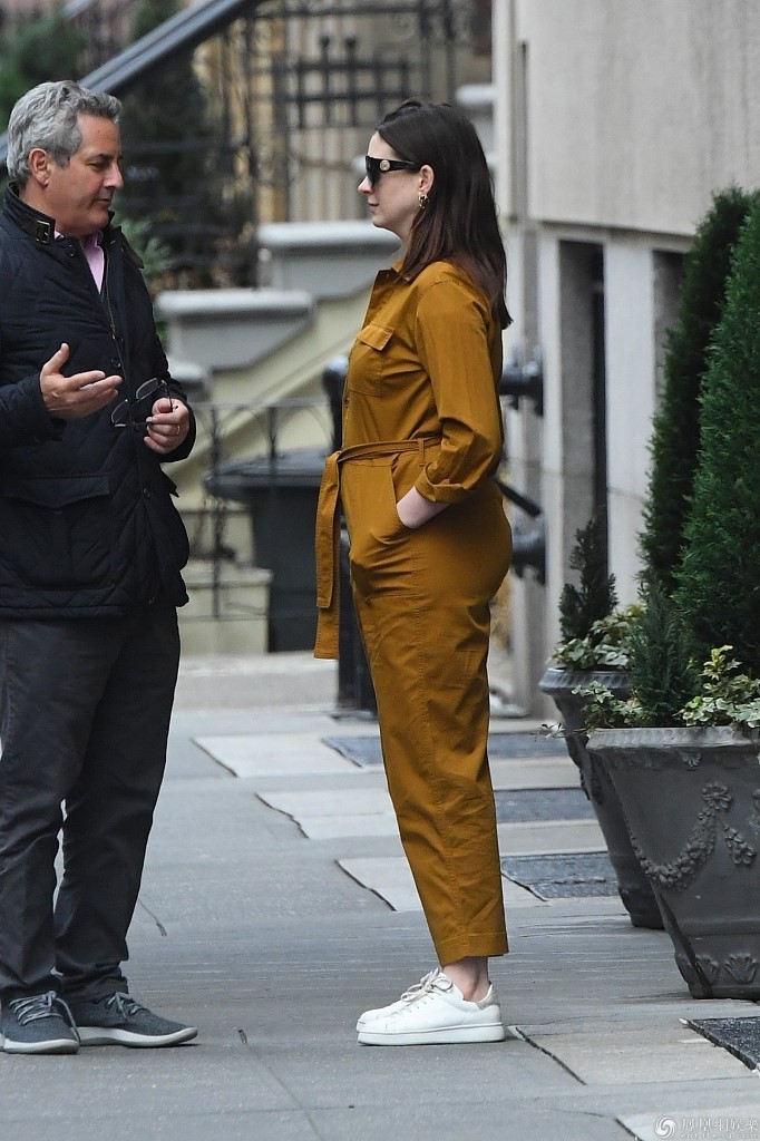 当地时间2020年3月10日,美国纽约,安妮·海瑟薇(Anne Hathaway)现身街头。穿连体裤戴墨镜出镜酷劲十