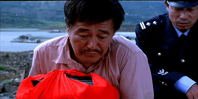 前面是滔滔不绝的江水,象征着川流不息的生活,背对着的是老赵的眼泪,还有警察的一句劝阻: