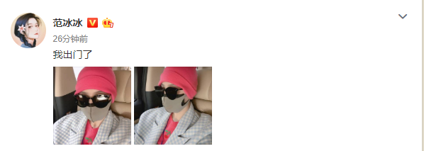 3月10日,范冰冰晒出两张自拍,并配文:“我出门了”,其中范冰冰防护措施引起大家的关注。